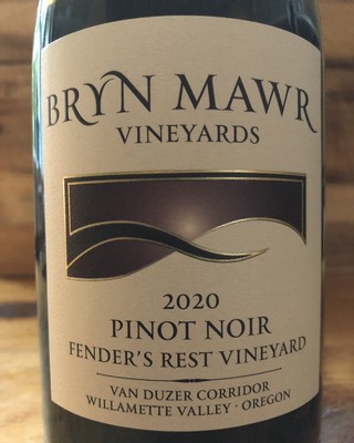 "Bryn Mawr 2020 Fender's Rest Vineyard Pinot Noir - This is a new vineyard for me, and the first time it's been made as a vineyard select for the winery. It's dark and lush with vibrant blackberry and boysenberry fruit. Winemaker Rachel Rose teases the more elegant aspects out around the potent core of fruit and acid and tannins. The barrel aging (25% new) adds a lovely toasty note resonating across the finish. Drink this now and over the next five years."